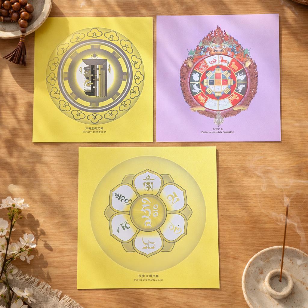 1. **製作**:招財除障咒輪紙通常讓有經驗的修行者製作,過程中會涉及唸誦經文、祈禱和進行特定儀式。
