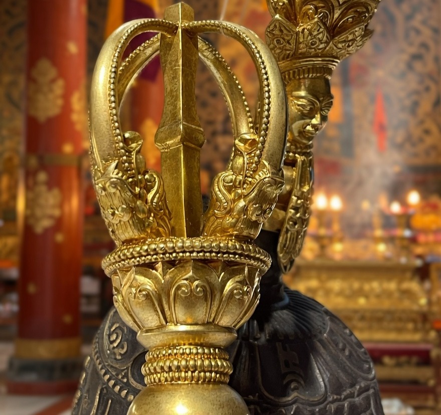 金剛杵(方便/智慧的力量)與金剛鈴(空性/智慧的本質)合一,象徵「智慧與慈悲不二」、「方便與空性圓融」,也就是成佛之道的核心。