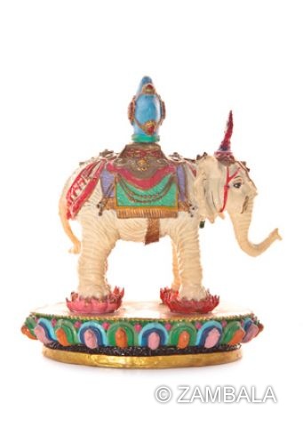 - **儀式中的視覺與象徵元素**:在一些佛教儀式如灌頂(empowerment)或祈福法會中,象寶的形象可能出現在壁畫、唐卡(thangka)或法器上,作為視覺輔助,強化轉輪聖王理想統治的教義。象寶的白色象徵純淨,六牙則代表六度波羅蜜(布施、持戒、忍辱、精進、禪定、智慧),幫助參與者冥想佛教的六種完善之道。在藏傳佛教的「八吉祥」(Aṣṭamaṅgala)或七寶供養中,象寶常與輪寶等並列,用來裝飾壇場,營造莊嚴氛圍,象徵世間寶物皆可轉為出世間的供養。