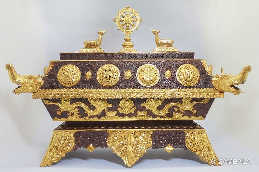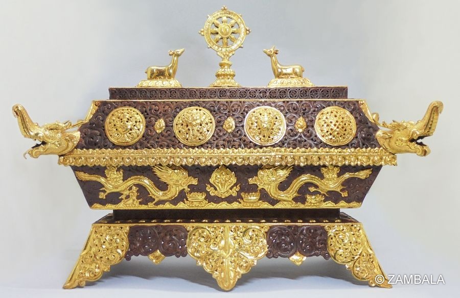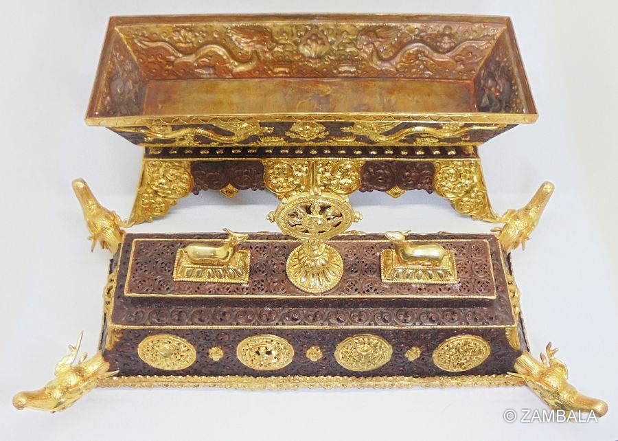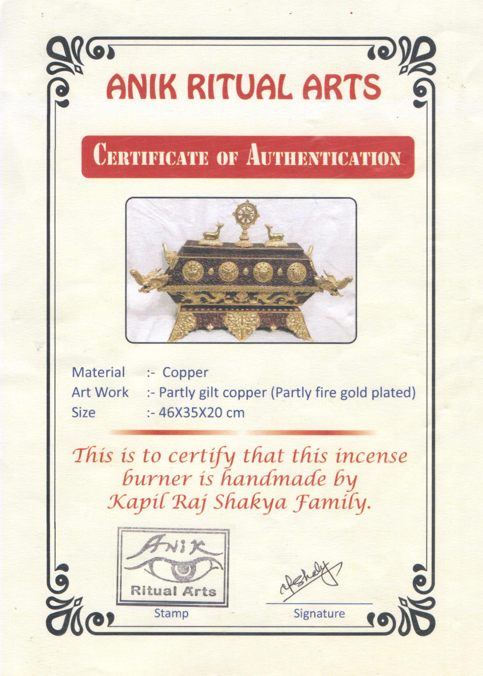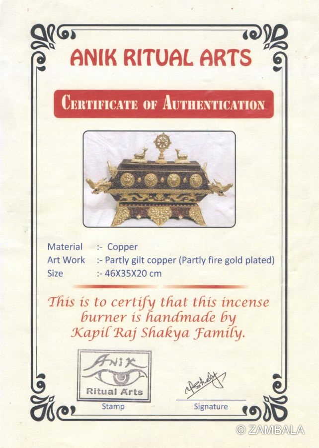 材質 : 來自尼泊爾釋迦族,手工红銅半鎏金臥香爐