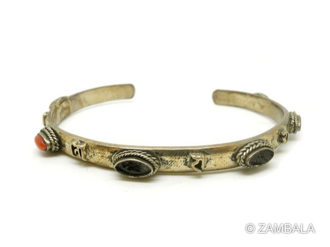 珊瑚六字大明咒銀手鐲